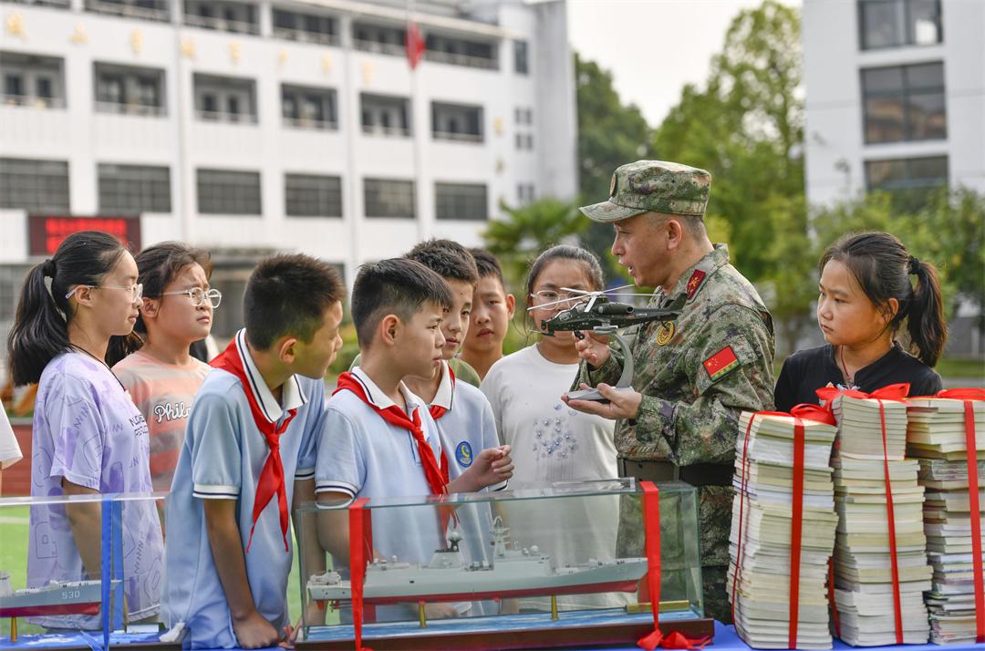 近日,安徽省合肥市廬陽區(qū)“全民國防教育月”活動走進(jìn)三十崗鄉(xiāng)古城小學(xué),通過普及國防知識、觀摩裝備模型等,引導(dǎo)廣大青少年熱愛國防,增強國防意識,提升國防素養(yǎng)。