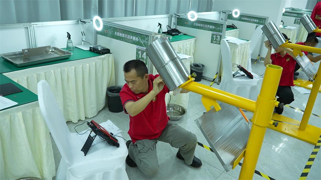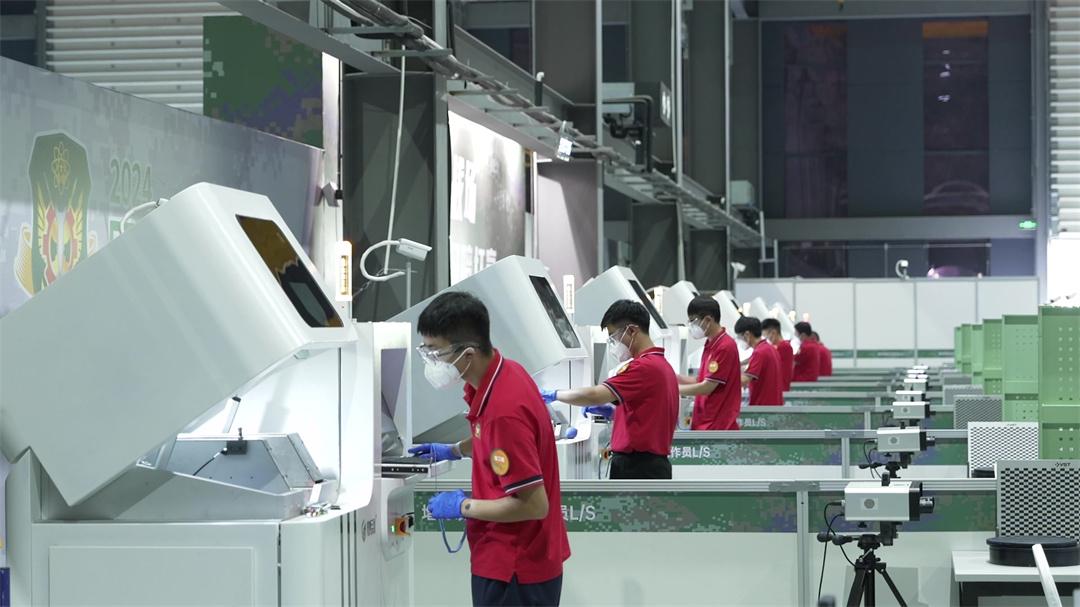 圖為無人機裝調(diào)檢修工比賽進行中。