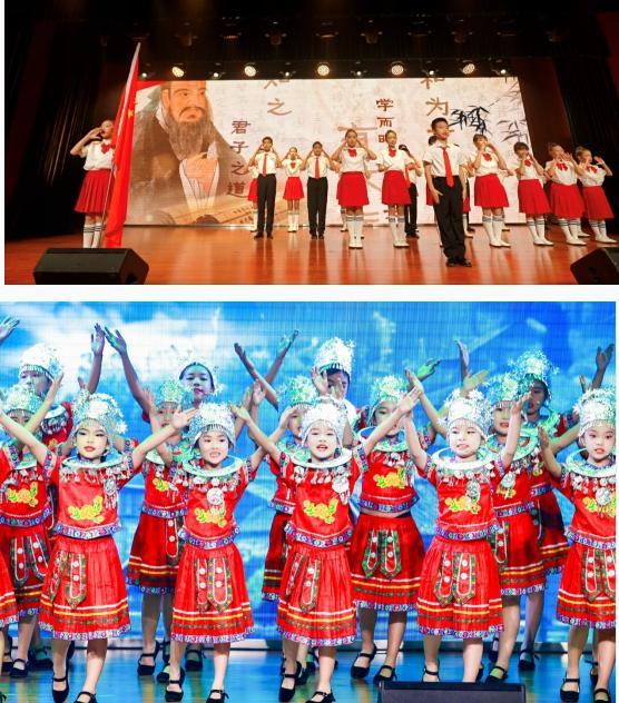 室內(nèi)舞臺上,精彩節(jié)目輪番上演,讓人目不暇接。詩歌朗誦《中國話》鏗鏘有力,京劇《貴妃醉酒》華麗細膩,女生表演唱《阿妹的苗寨》歡快動人……每一個節(jié)目都是孩子們用心血和熱情澆灌的碩果,他們用自己的方式向祖國母親獻上最真摯的祝福。