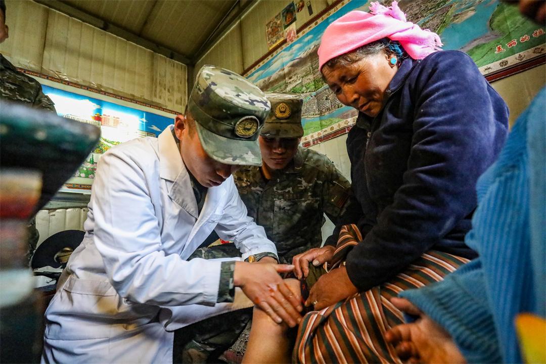 圖為武警官兵慰問(wèn)當(dāng)?shù)厝罕姟?/span>