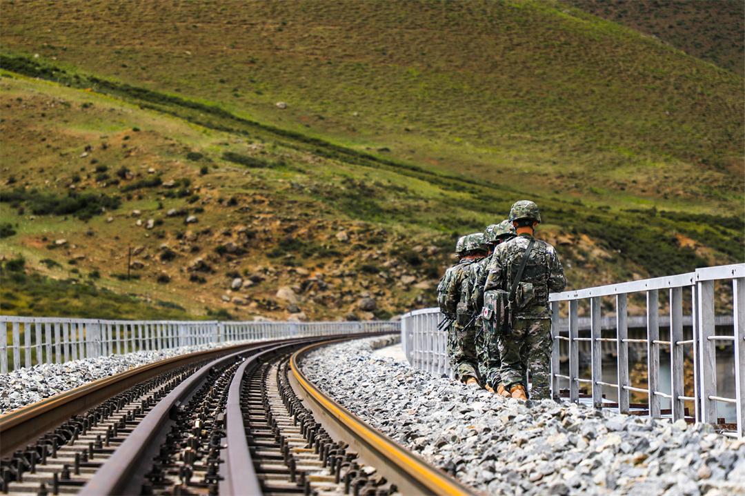 青藏鐵路是西藏連接內(nèi)地最重要的生命線。守護(hù)這條“天路”的武警西藏總隊(duì)拉薩支隊(duì)執(zhí)勤八大隊(duì)官兵,在一列列火車(chē)?guó)Q響的汽笛聲中,對(duì)這條幸福路、發(fā)展路、團(tuán)結(jié)路有著更為深刻的感悟。他們守護(hù)的不僅是鐵路,而是西藏經(jīng)濟(jì)社會(huì)發(fā)展的大動(dòng)脈。