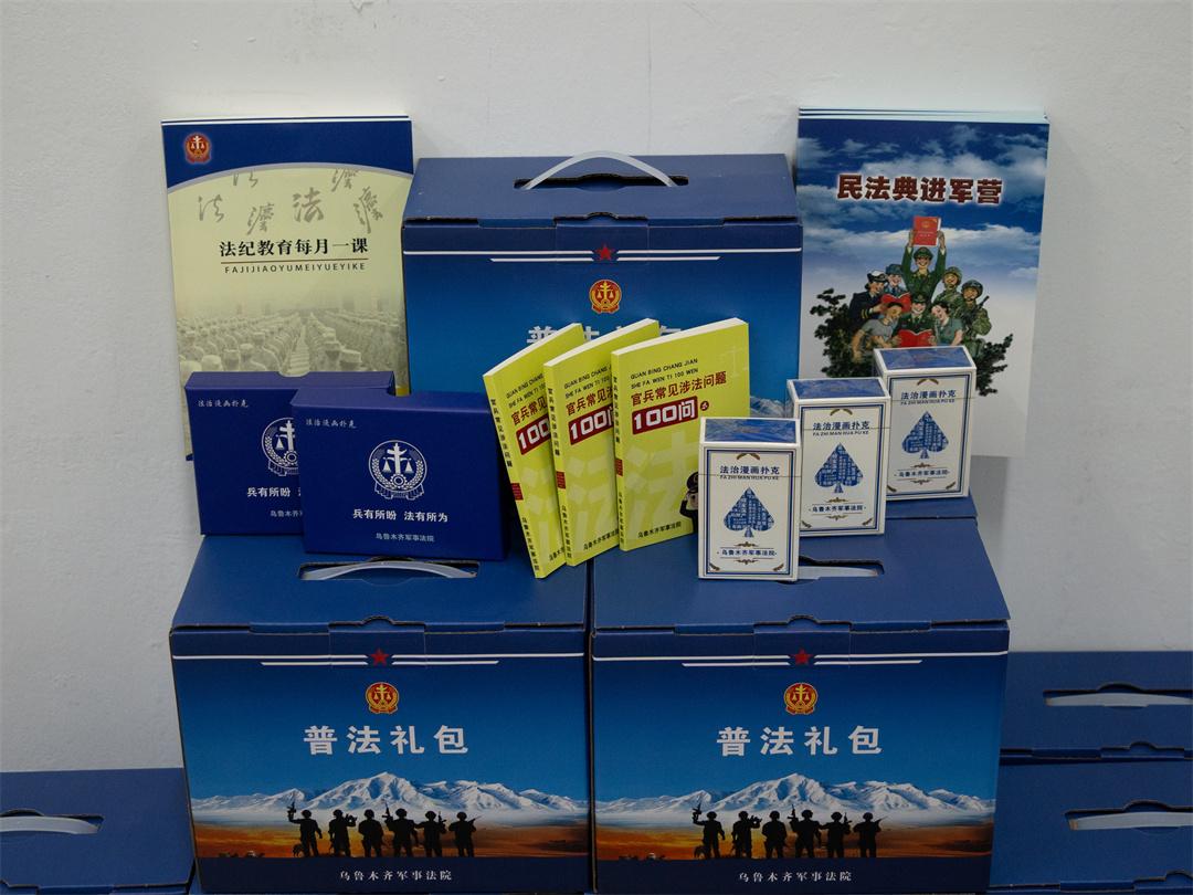 圖為烏魯木齊軍事法院為部隊(duì)官兵精心設(shè)計的普法大禮包。鐘子夜 攝