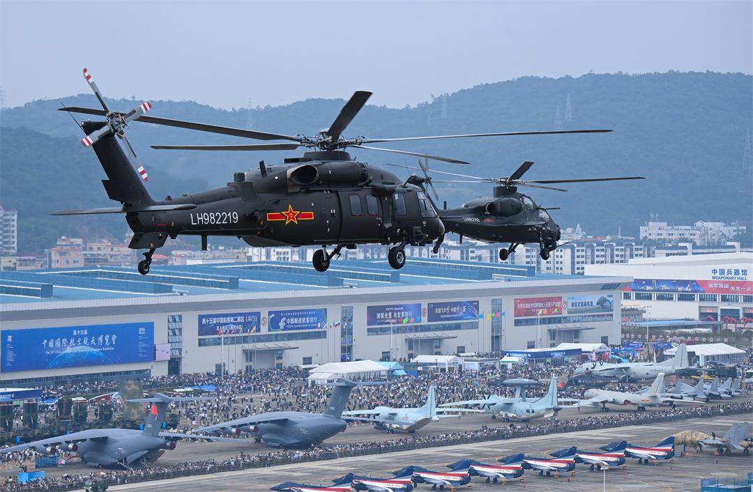 藍(lán)天之下,戰(zhàn)機(jī)轟鳴。第十五屆中國航展現(xiàn)場,陸軍數(shù)架多型戰(zhàn)機(jī)貫空而來,呈戰(zhàn)斗隊(duì)形通場。
