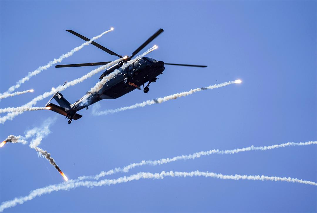 圖為直-20戰(zhàn)機(jī)發(fā)射干擾彈。陳凱 攝