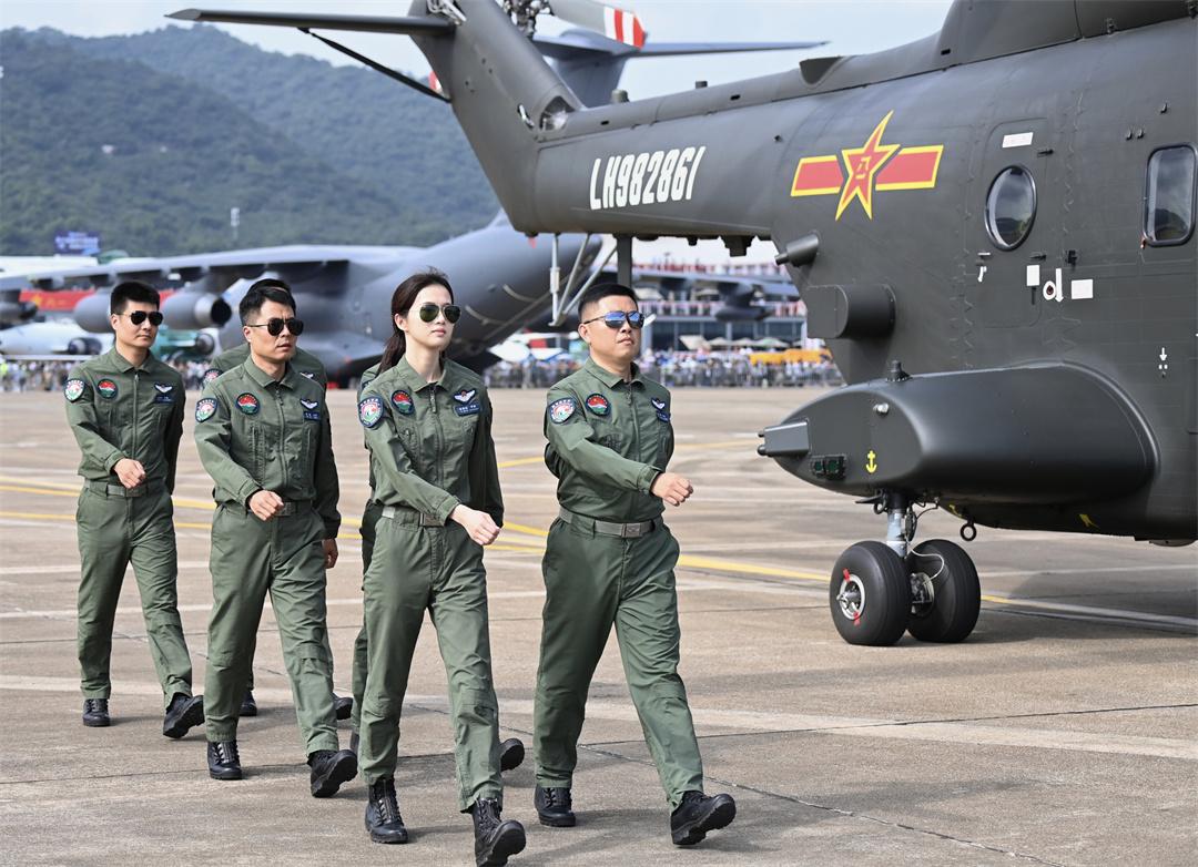 圖為第十五屆中國航展上,女飛行員徐楓燦(右二)與戰(zhàn)友一起走向機(jī)位。張永進(jìn) 攝