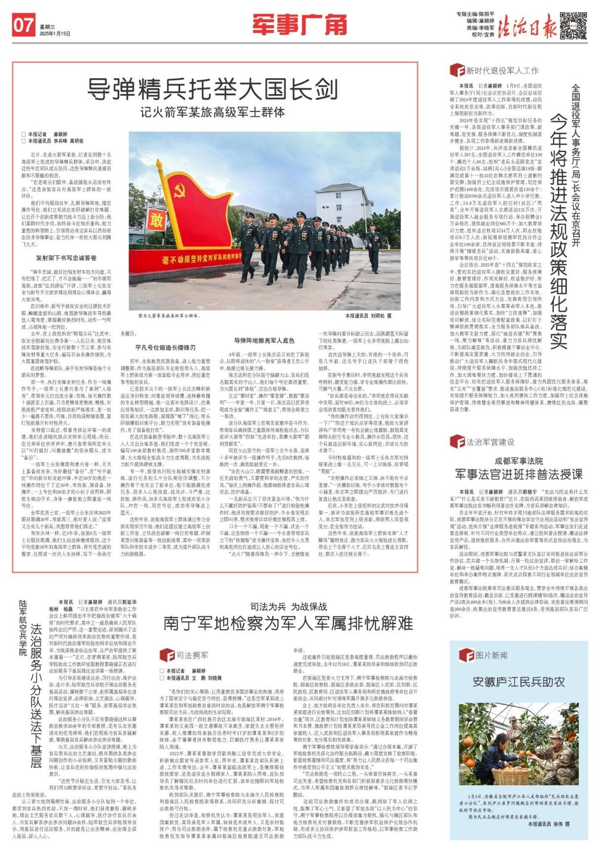 他們平均服役21年,扎根導(dǎo)彈陣地,錨定操作號(hào)位;他們立足戰(zhàn)位攻研破解打仗難題,讓近百個(gè)創(chuàng)新成果助力戰(zhàn)斗力邁上新臺(tái)階;他們緊跟時(shí)代步伐,始終奮斗在知識(shí)重構(gòu)、能力重塑的轉(zhuǎn)型路上,引領(lǐng)帶動(dòng)身邊官兵以昂揚(yáng)姿態(tài)投身導(dǎo)彈事業(yè),奮力托舉一枚枚大國長劍騰飛九天。