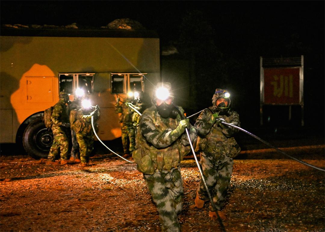 圖為火箭軍某旅高級(jí)軍士展開全防護(hù)下訓(xùn)練演練。劉明松 攝
