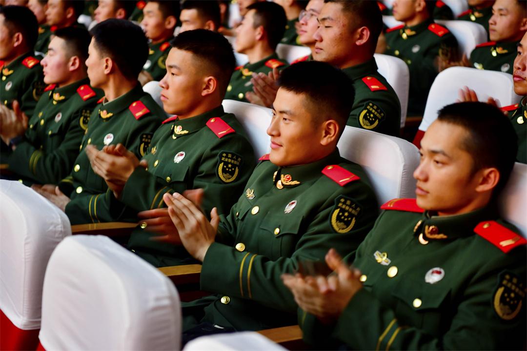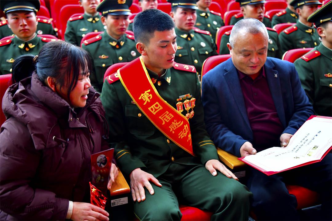 典禮分為鐵血忠誠、勇?lián)姑?、同心同向三個(gè)篇章,通過事跡短片、親情連線、現(xiàn)場訪談、文藝演出等形式,立體展現(xiàn)了身邊典型感人事跡和精神風(fēng)貌,現(xiàn)場掌聲一浪高過一浪。同時(shí),為不斷增強(qiáng)軍人軍屬榮譽(yù)感、自豪感和尊崇感,支隊(duì)還邀請獲獎(jiǎng)官兵家屬作為嘉賓登臺(tái)獻(xiàn)花,與“感動(dòng)人物”共享榮譽(yù)時(shí)刻。