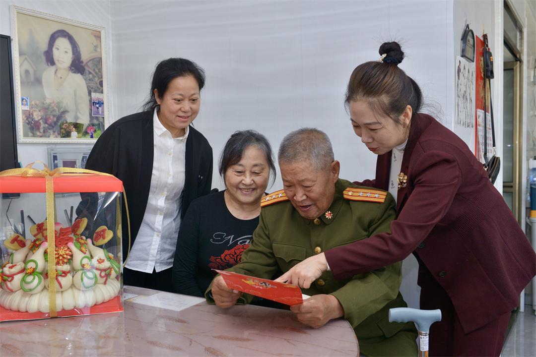 圖為看望慰問抗美援朝老兵,向抗美援朝老兵贈送“大禮包”。