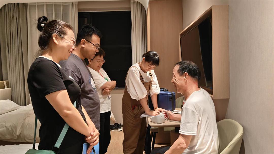 圖為軍休干部健康療養(yǎng)期間工作人員上門巡診。