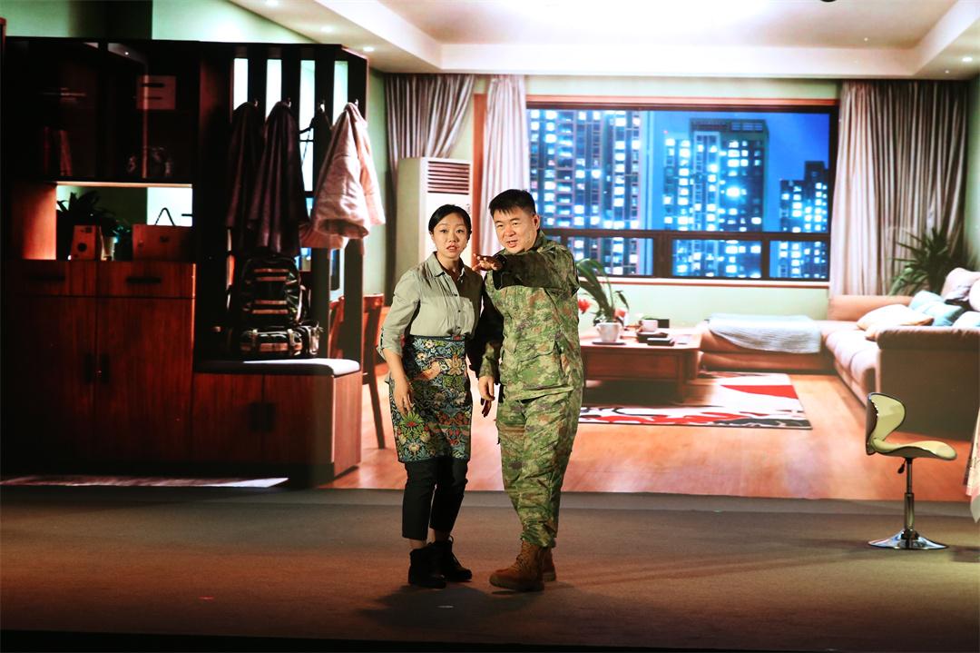 一棵樹(shù)、一個(gè)家、一輩子、一生情,舞臺(tái)上演出了軍嫂對(duì)丈夫工作無(wú)怨無(wú)悔的支持。演員們飽含深情的臺(tái)詞,讓在場(chǎng)觀眾流下感動(dòng)和幸福的淚水。