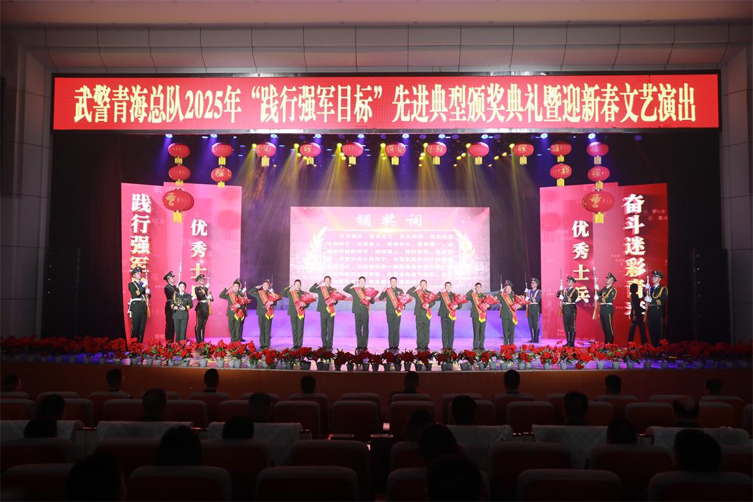 節(jié)目間隙還穿插了武警青??傟?025年“踐行強軍目標”先進典型頒獎環(huán)節(jié),總隊首長分別為8名警官、10名士兵和2名文職人員頒發(fā)“踐行強軍目標”優(yōu)秀個人榮譽。一年來,在總隊黨委的堅強領(lǐng)導下,官兵們堅定信心、團結(jié)奮進、凝心聚力、勇?lián)姑?,涌現(xiàn)出很多先進典型和模范。