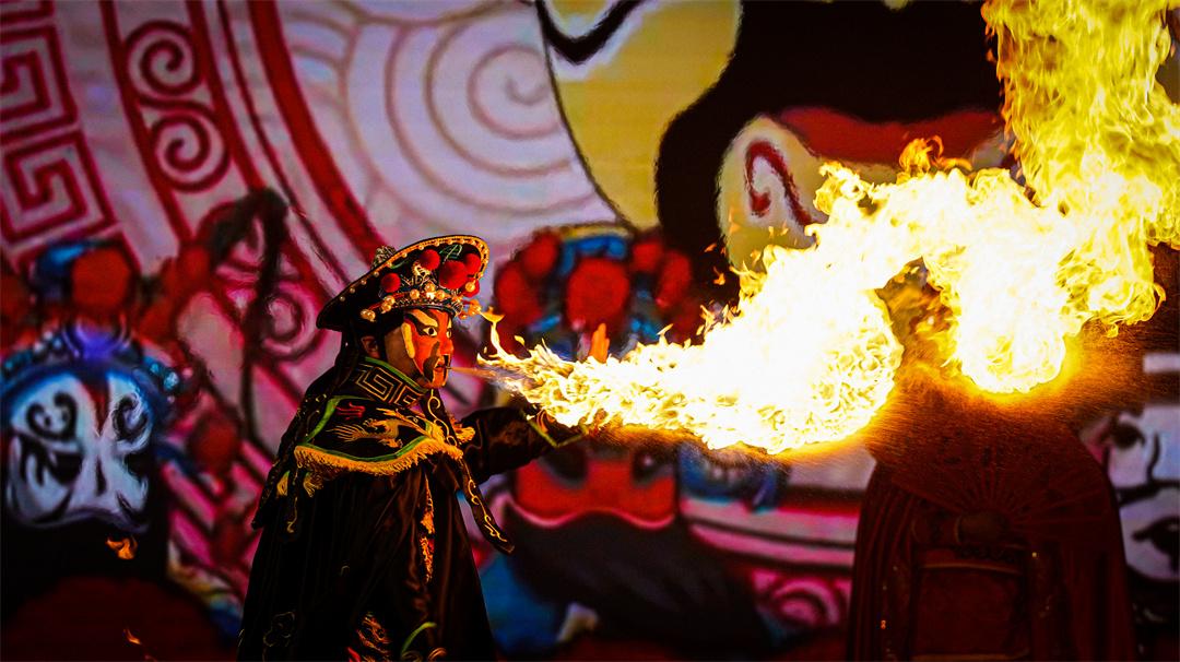 圖為非遺噴火表演。