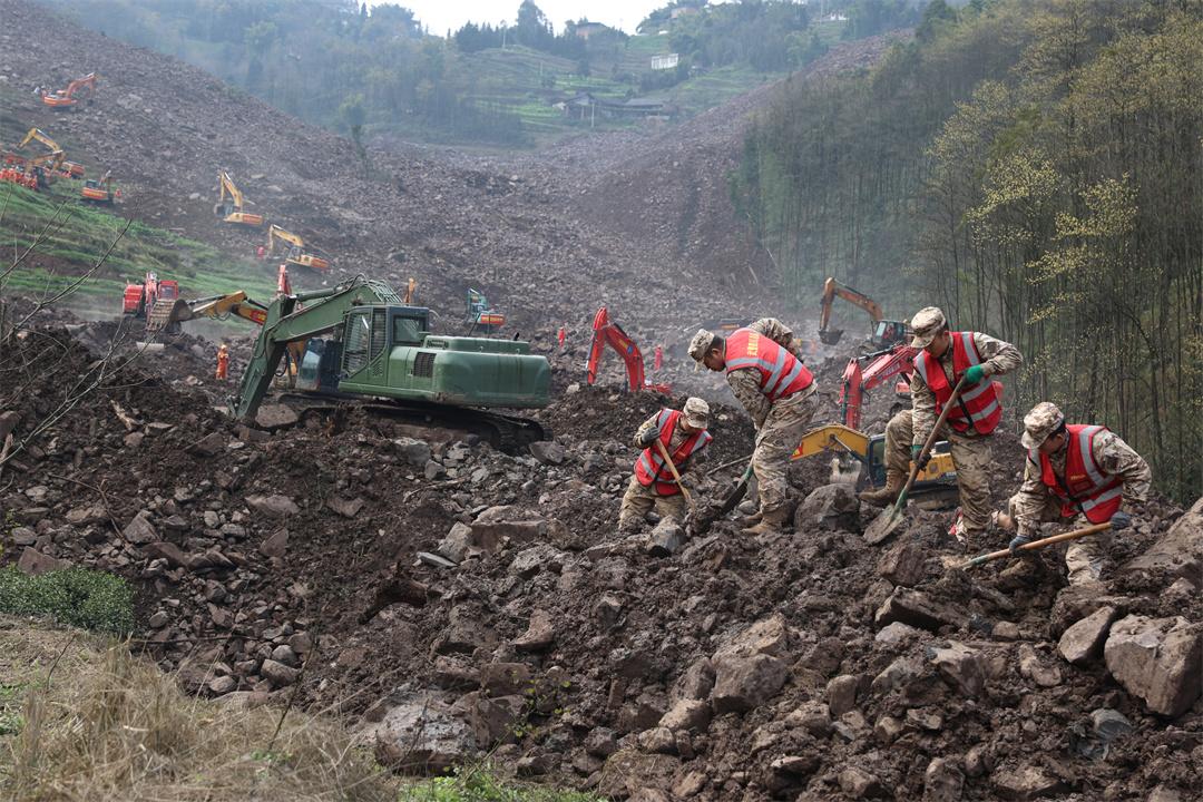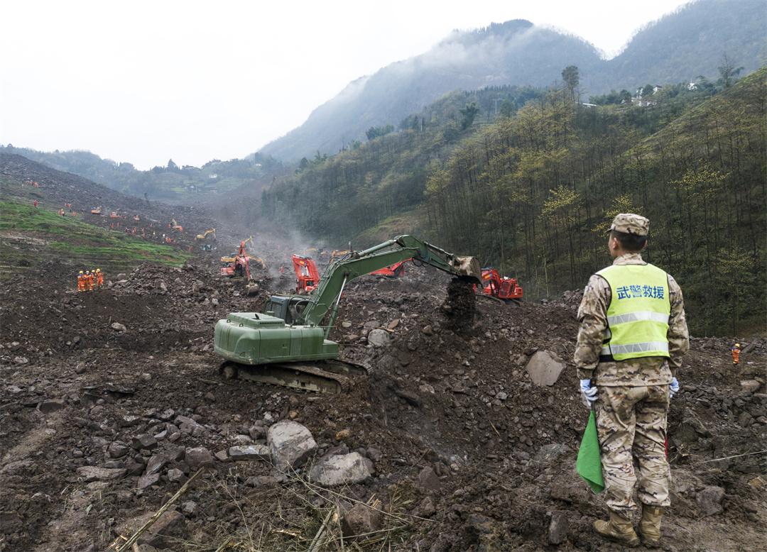 武警官兵搜救筠連山體滑坡失聯(lián)人員