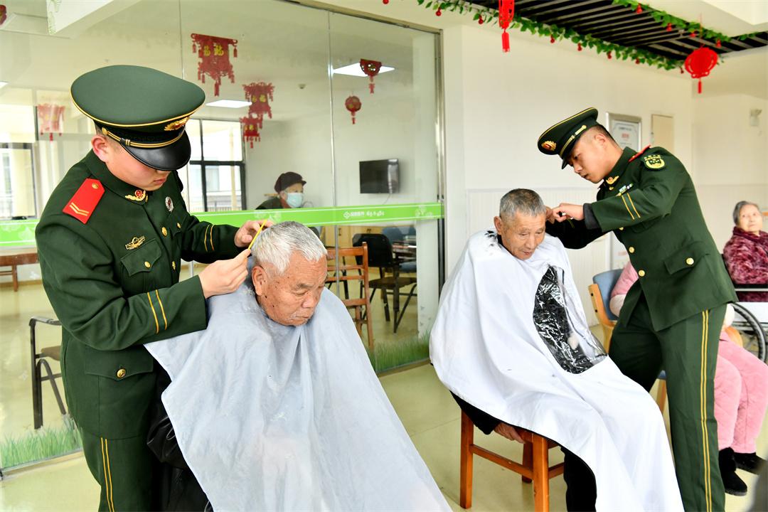 近日,武警江西總隊上饒支隊開展“傳承雷鋒精神,踐行初心使命”主題活動。官兵們走進駐地福利院為老人疊被子、理發(fā)、過生日,為傳承雷鋒精神、構建和諧社會作出實際行動。