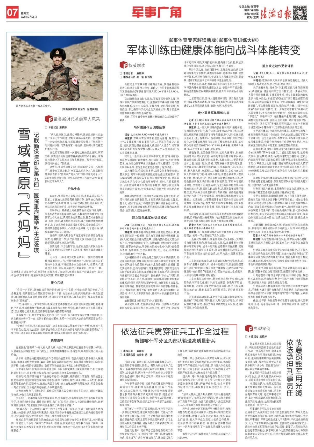 “必須從源頭上提升兵員素質,為部隊輸送高質量‘新鮮血液’。”喀什軍分區(qū)領導說,“依法征兵既維護了應征青年權益,也讓兵役征集優(yōu)中選優(yōu)原則深入人心,為強軍興軍提供可靠的人才保證。”