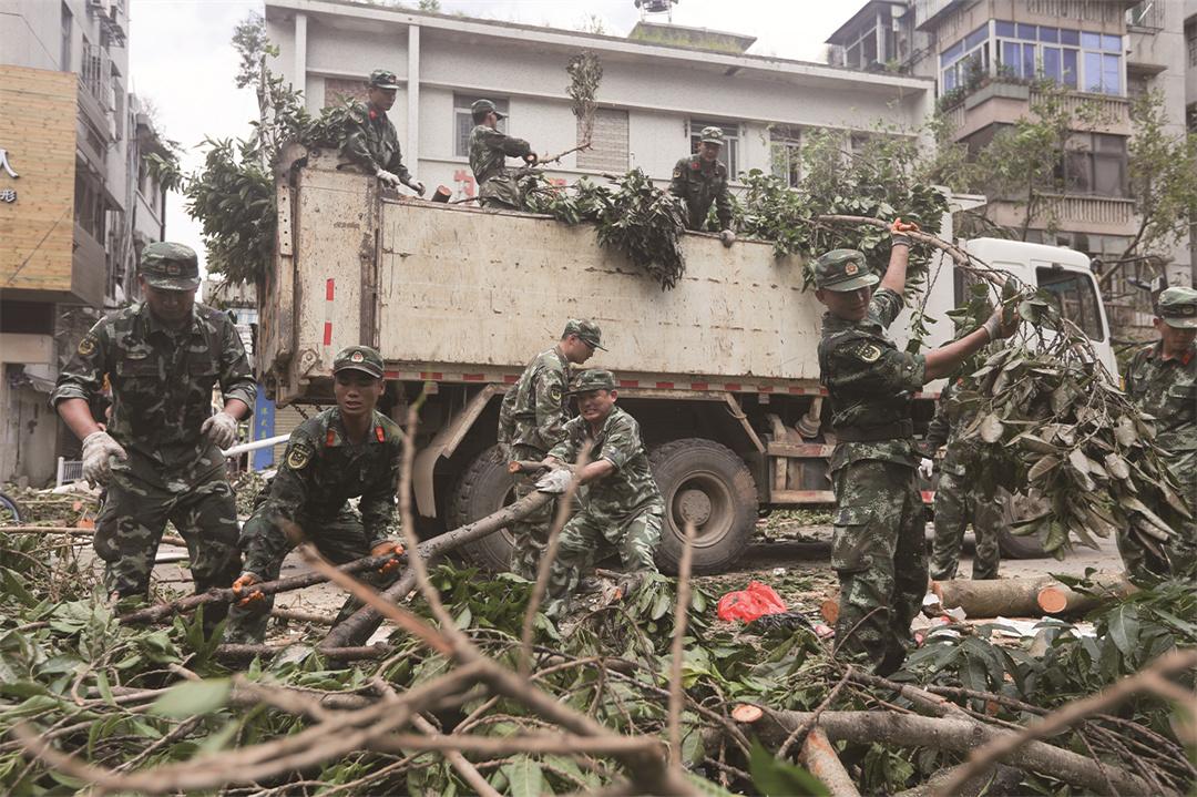 “紅色前哨連”聞令而動(dòng),官兵們在齊腰深的海水中摸索前行,赤腳涉險(xiǎn)1公里抵達(dá)災(zāi)區(qū)。面對情侶路被海水倒灌、樹木橫阻的險(xiǎn)情,60余名官兵連續(xù)3天每天奮戰(zhàn)10小時(shí),用斧頭劈開倒伏樹干,徒手搬運(yùn)數(shù)百斤樹枝,清理被淹車輛十余臺,轉(zhuǎn)移群眾30余人,疏通情侶南路3.7公里。
