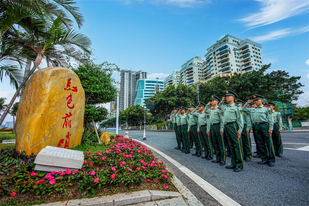 晨光熹微,武警廣東總隊(duì)珠海支隊(duì)執(zhí)勤一中隊(duì)指導(dǎo)員陳振煒帶領(lǐng)官兵從拱北口岸出發(fā),前往中隊(duì)原“一號哨位”。那里,曾是他們守護(hù)港珠澳大橋建設(shè)的前沿陣地。哨位旁的巨石上,“紅色前哨”4個(gè)紅色大字格外醒目。