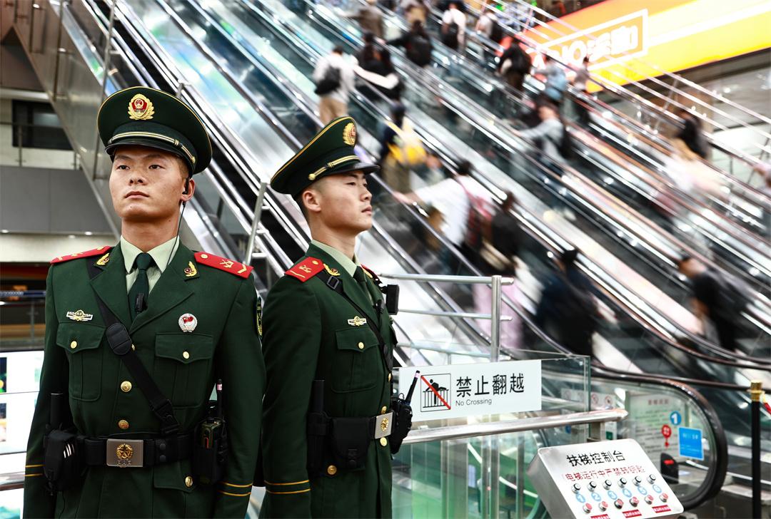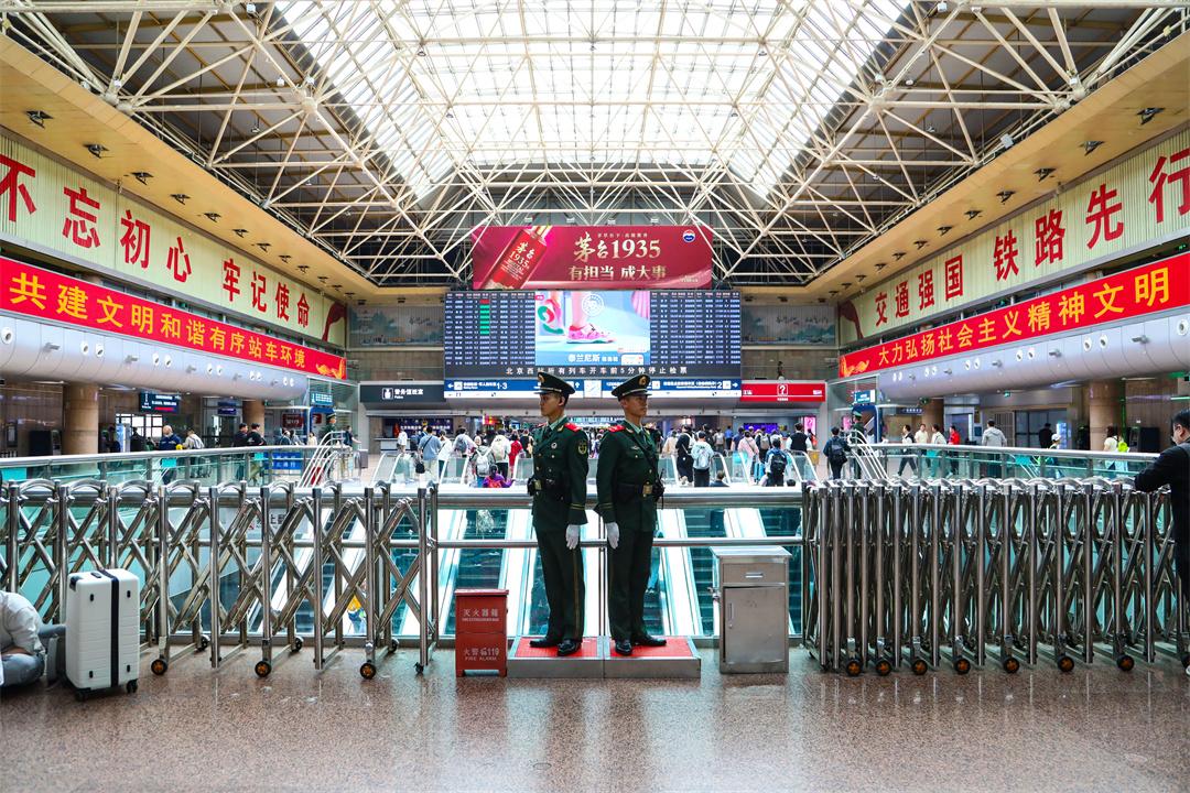 今年五一假期,北京地區(qū)迎來雙向出行高峰,各大交通樞紐客流激增。假期首日,北京西站客流量近40萬人次,擔(dān)負(fù)北京西站守衛(wèi)任務(wù)的武警北京總隊執(zhí)勤第六支隊官兵堅守執(zhí)勤崗位,熱心為旅客提供幫助,全力守護(hù)旅客平安出行。