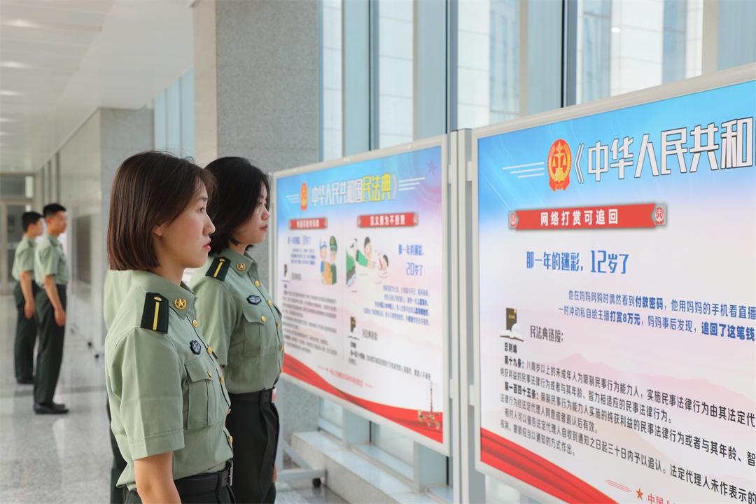 圖為官兵們觀看民法典展板。王蒙 攝