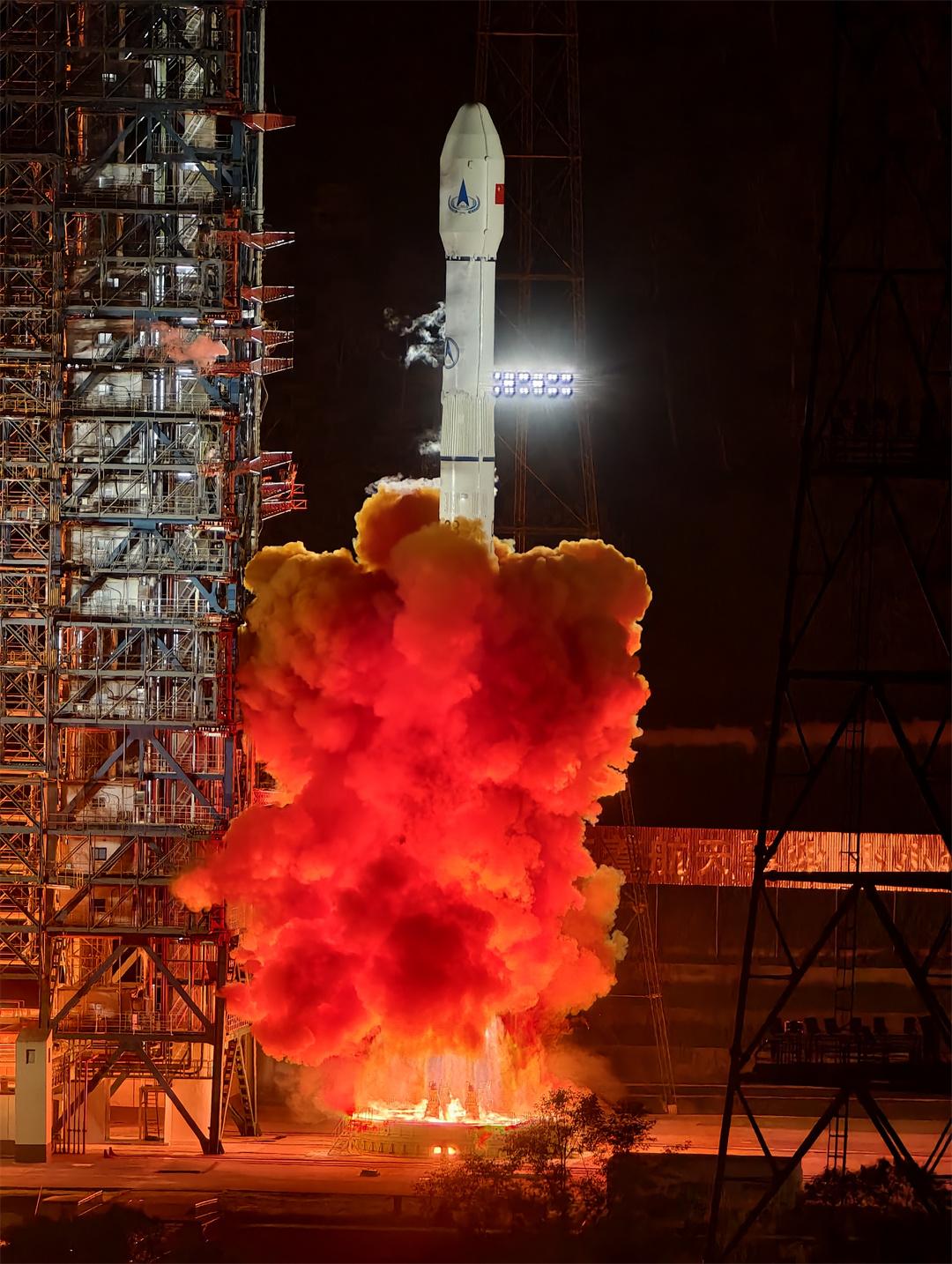 此次任務是長征系列運載火箭第578次發(fā)射。執(zhí)行發(fā)射任務的長征三號乙運載火箭,是我國高軌發(fā)射的主力火箭,也是我國宇航發(fā)射次數(shù)最多的火箭,此前已完成108次發(fā)射,曾執(zhí)行過嫦娥三號、嫦娥四號等探月工程任務。為確?!伴L征三號乙火箭‘可靠、精準、準時’答卷”,跑好天問二號任務“第一棒”,設計人員歷時2年完成了多輪設計迭代,同時滿足了各方約束要求,實現(xiàn)火箭與探測器完美“交接班”。