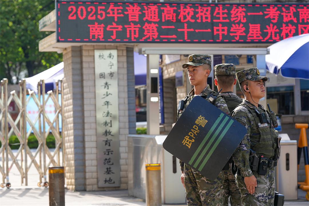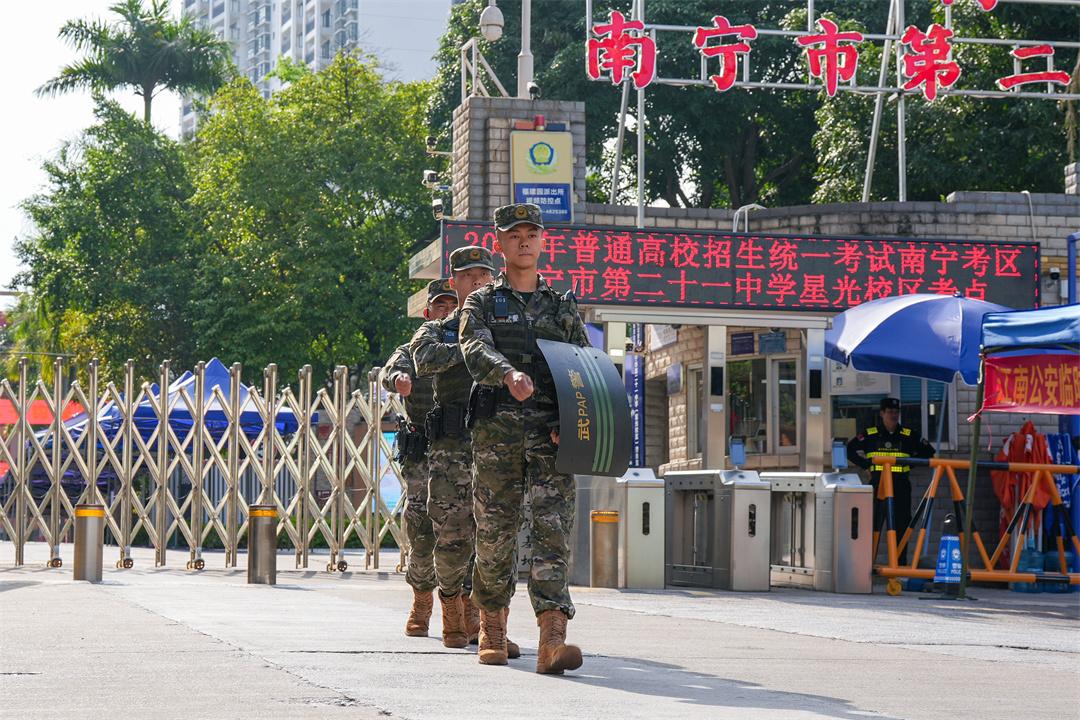 今年高考期間,武警廣西總隊南寧支隊科學(xué)優(yōu)化執(zhí)勤編組,在駐地各考點(diǎn)嚴(yán)密部署定點(diǎn)警戒、徒步巡邏與車巡力量,全方位保障考生安全,確保高考順利進(jìn)行。