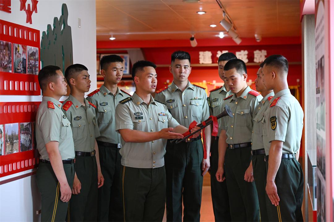 “眼前這把銹跡斑駁的軍號,訴說著歷盡烽煙的歷史。它是官兵沖鋒陷陣的領跑者,亦是中隊日新月異的見證者……”盛夏時節(jié),武警安徽總隊合肥支隊執(zhí)勤一大隊執(zhí)勤一中隊政治指導員潘翔,以“曬曬中隊傳家寶”為引,為全隊官兵上了一堂生動的教育課。