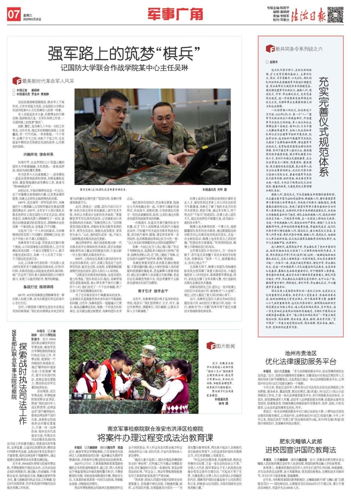 一次刻骨銘心的儀式,往往勝過(guò)千言萬(wàn)語(yǔ)。1933年8月1日,第一個(gè)“八一”建軍節(jié)慶祝活動(dòng)在江西瑞金舉行,開(kāi)創(chuàng)建軍節(jié)慶祝儀式的傳統(tǒng)。軍人地位和權(quán)益保障法第十條規(guī)定:每年8月1日為中國(guó)人民解放軍建軍節(jié)。各級(jí)人民政府和軍隊(duì)單位應(yīng)當(dāng)在建軍節(jié)組織開(kāi)展慶祝、紀(jì)念等活動(dòng)。這為組織開(kāi)展建軍節(jié)慶祝儀式提供了法律依據(jù)和保障。增設(shè)建軍節(jié)慶祝儀式,是貫徹落實(shí)國(guó)家法律的實(shí)際舉措,有利于激發(fā)軍人建功立業(yè)、報(bào)效國(guó)家的使命感責(zé)任感,提升軍隊(duì)凝聚力和戰(zhàn)斗力,有利于加強(qiáng)全民國(guó)防教育,在全社會(huì)營(yíng)造關(guān)心國(guó)防、熱愛(ài)國(guó)防、建設(shè)國(guó)防、保衛(wèi)國(guó)防的良好氛圍,真正使軍人成為全社會(huì)尊崇的職業(yè)。此次隊(duì)列條令修訂堅(jiān)持從實(shí)際出發(fā),著重對(duì)建軍節(jié)慶祝儀式程序安排、組織實(shí)施、相關(guān)要求等作出統(tǒng)一規(guī)范,目的在于既保證儀式活動(dòng)熱烈、隆重的效果,又避免因儀式繁瑣增加部隊(duì)負(fù)擔(dān)。