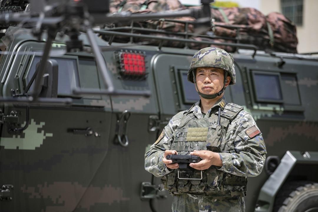 圖為李興坤利用無人機(jī)進(jìn)行空中偵察。