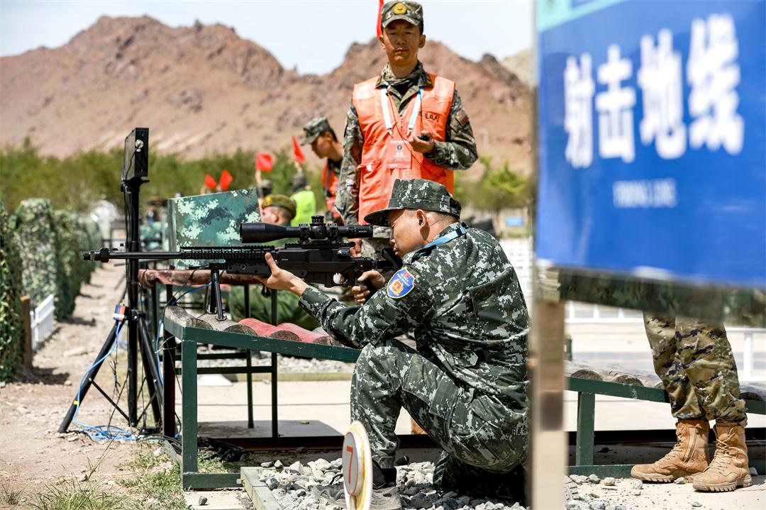 圖為7月17日,白俄羅斯參賽隊(duì)員在新疆烏魯木齊武警部隊(duì)某訓(xùn)練基地參加“城市要點(diǎn)控守狙擊”課目競(jìng)賽。趙俊杰 攝