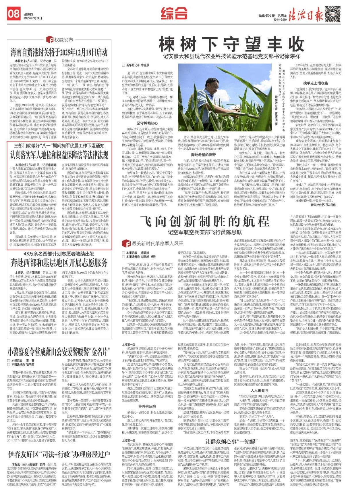 通知明確,各部隊(duì)要堅(jiān)決貫徹落實(shí)軍隊(duì)參加和支援經(jīng)濟(jì)社會(huì)建設(shè)領(lǐng)導(dǎo)小組年度工作部署安排,發(fā)揮軍隊(duì)優(yōu)勢(shì)支持經(jīng)濟(jì)社會(huì)高質(zhì)量發(fā)展。突出支持鄉(xiāng)村振興,跟進(jìn)黨中央關(guān)于鞏固成果、常態(tài)化幫扶機(jī)制等政策調(diào)整,及時(shí)優(yōu)化軍隊(duì)幫扶措施,確保幫扶任務(wù)平穩(wěn)有序推進(jìn)。節(jié)日期間廣泛組織送溫暖獻(xiàn)愛(ài)心等便民惠民活動(dòng),積極為城鄉(xiāng)低保對(duì)象、殘疾人、空巢老人和留守兒童等困難群體辦實(shí)事、做好事。