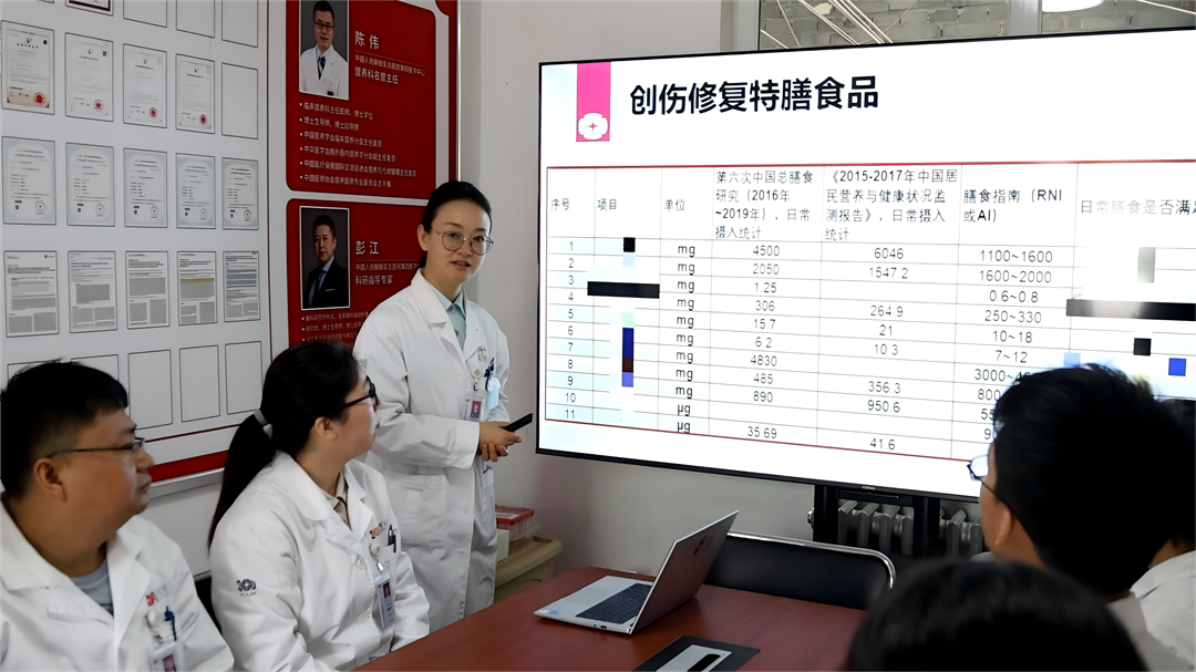 圖為營(yíng)養(yǎng)科劉玲英主任帶領(lǐng)團(tuán)隊(duì)針對(duì)創(chuàng)傷修復(fù)特膳食品項(xiàng)目進(jìn)行科研攻關(guān)。張萌 攝