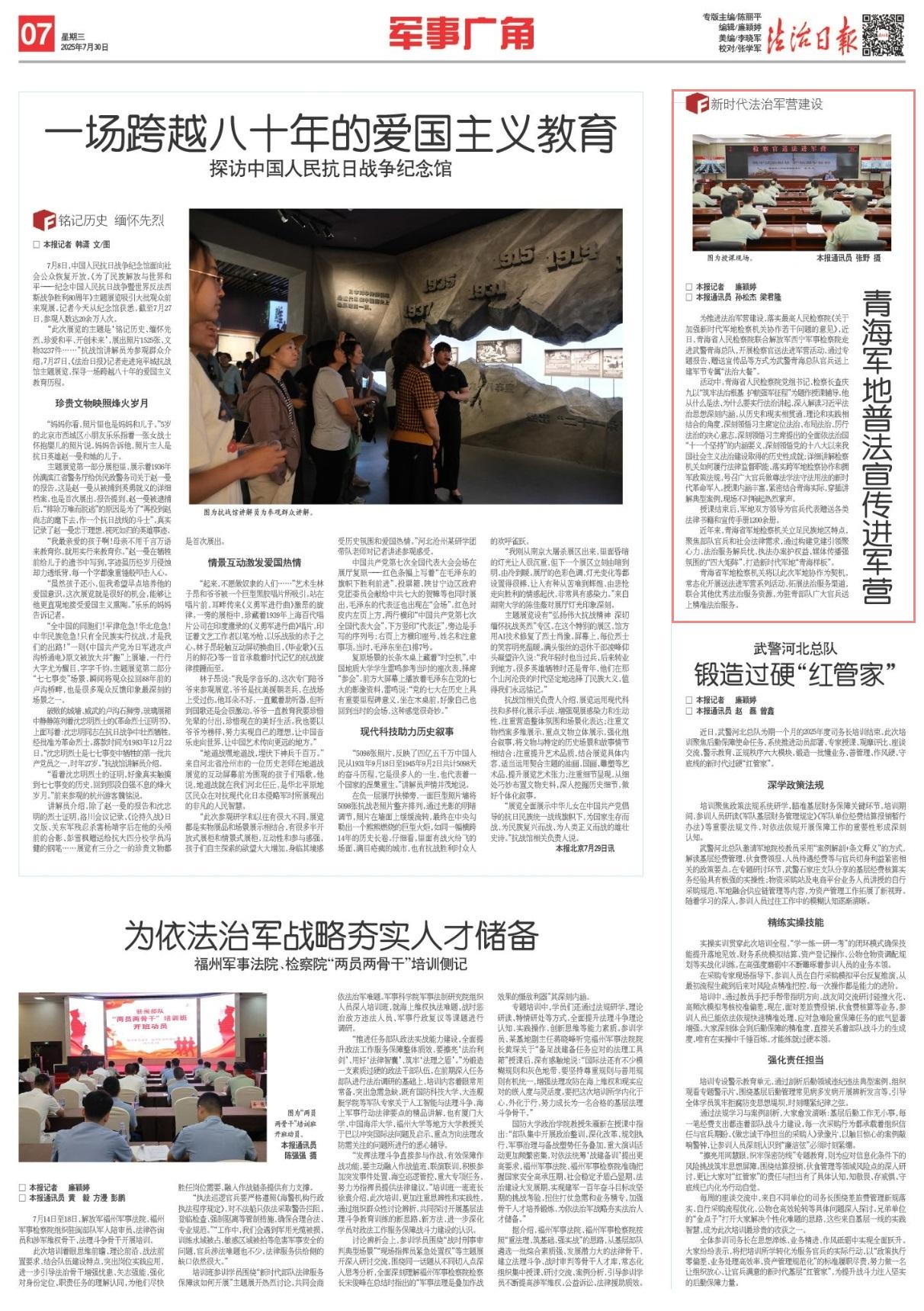 近年來,青海省軍地檢察機關立足民族地區(qū)特點,聚焦部隊官兵和社會法律需求,通過構(gòu)建黨建引領聚心力、法治服務解兵憂、執(zhí)法辦案護權(quán)益、媒體傳播強氛圍的“四大矩陣”,打造新時代軍地“青海樣板”。