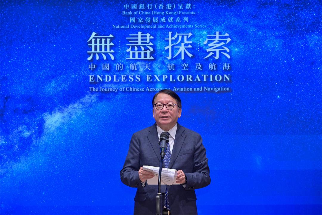 7月31日,由中國(guó)國(guó)家航天局與香港特別行政區(qū)政府聯(lián)合主辦的“無(wú)盡探索:中國(guó)的航天、航空及航?!闭褂[在香港科學(xué)館開(kāi)幕。本次展覽旨在全方位展示我國(guó)在航天、航空、航海領(lǐng)域取得的最新成就,激發(fā)香港公眾特別是青少年對(duì)科技創(chuàng)新的熱情,助推香港科技創(chuàng)新能力不斷攀升。中國(guó)國(guó)家航天局總工程師李國(guó)平、香港特別行政區(qū)政務(wù)司司長(zhǎng)陳國(guó)基出席開(kāi)幕典禮并致辭。
