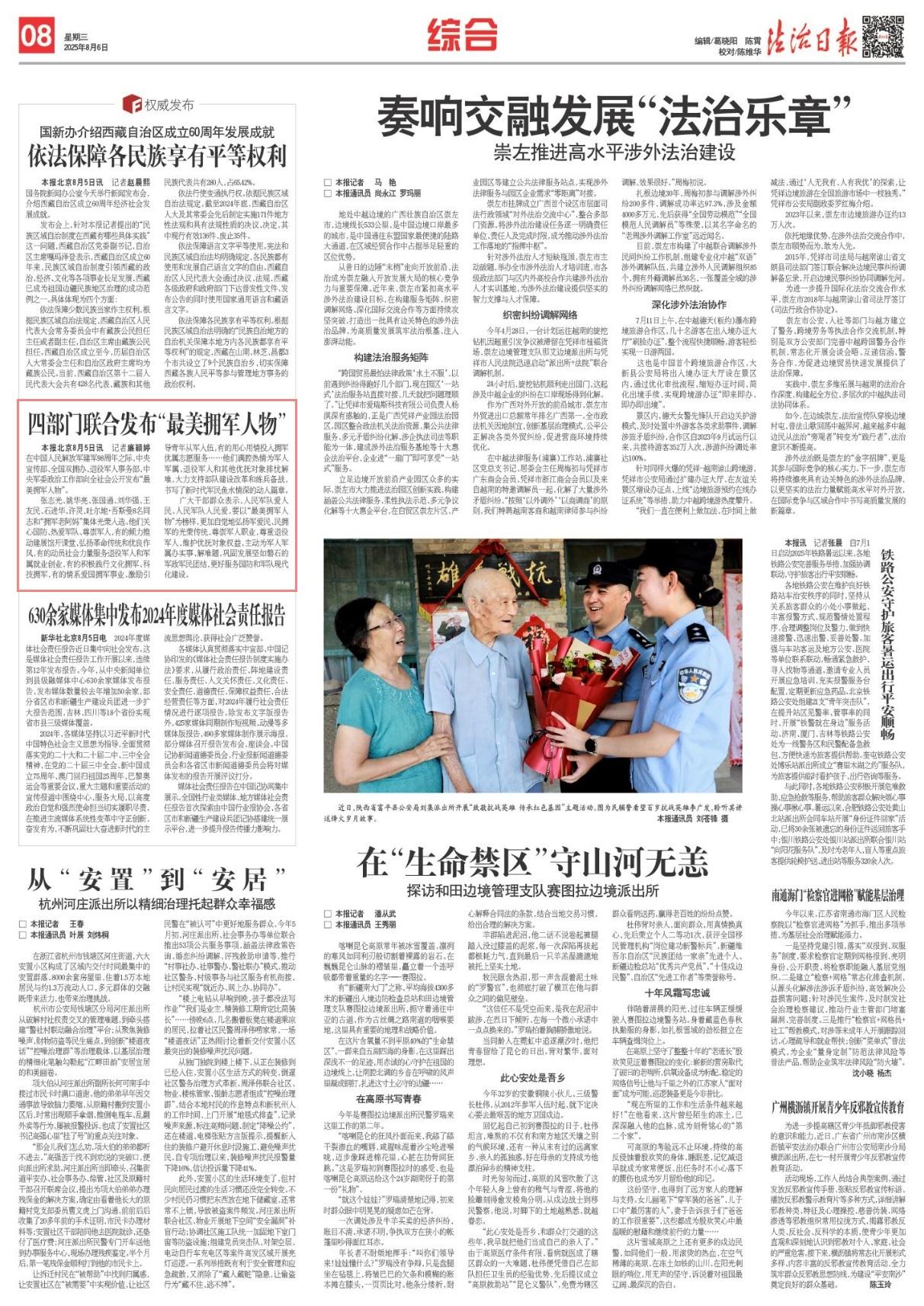 張志光、姚華亮、張國通、劉華強(qiáng)、王友民、石進(jìn)華、許靈、吐爾地·吾斯曼8名同志和“擁軍老阿媽”集體光榮入選。他們關(guān)心國防、熱愛軍隊、尊崇軍人,有的傾力推動建展館開課堂、弘揚(yáng)革命傳統(tǒng)和優(yōu)良作風(fēng),有的動員社會力量服務(wù)退役軍人和軍屬就業(yè)創(chuàng)業(yè),有的積極踐行文化擁軍、科技擁軍,有的情系愛國擁軍事業(yè)、激勵引導(dǎo)青年從軍入伍,有的用心用情投入擁軍優(yōu)屬志愿服務(wù)……他們滿腔熱情為軍人軍屬、退役軍人和其他優(yōu)撫對象排憂解難,大力支持部隊建設(shè)改革和練兵備戰(zhàn),書寫了新時代軍民魚水情深的動人篇章。
