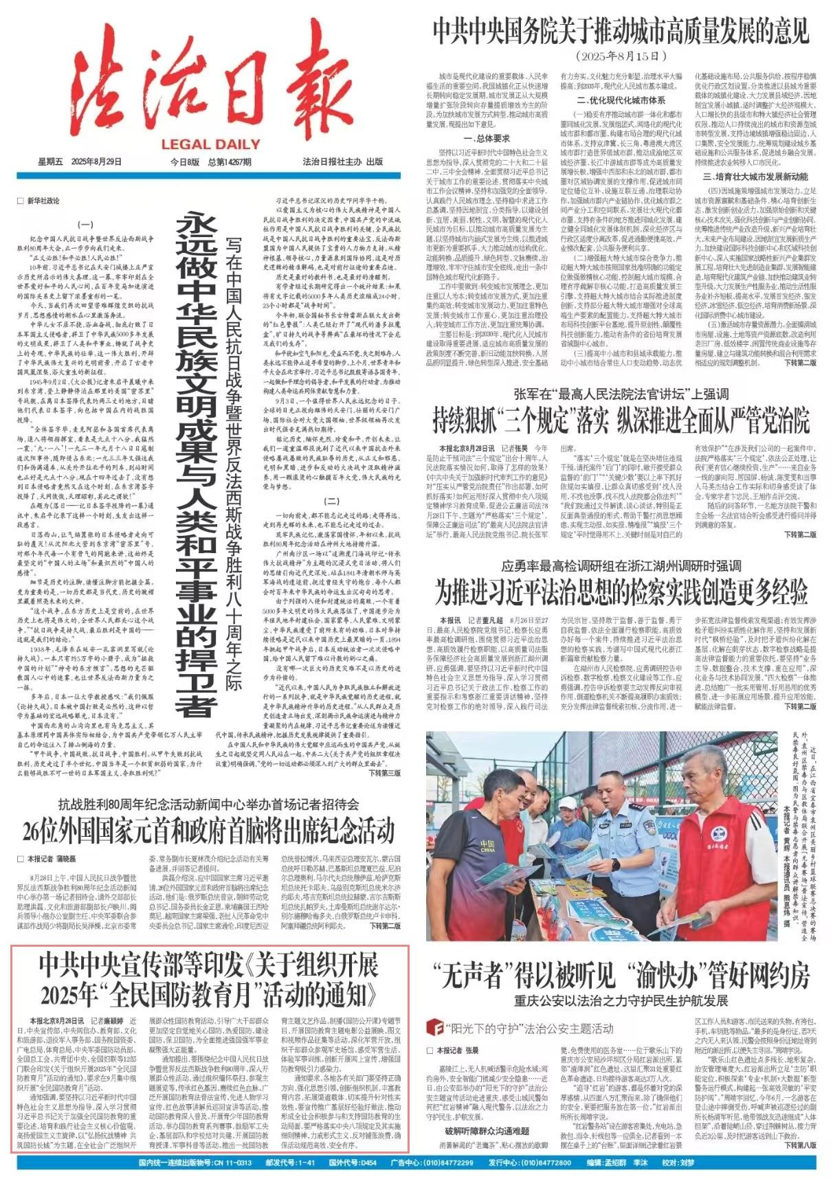 近日,中央宣傳部、中央網(wǎng)信辦、教育部、文化和旅游部、退役軍人事務部、國務院國資委、廣電總局、體育總局、中央軍委國防動員部、全國總工會、共青團中央、全國婦聯(lián)等12部門聯(lián)合印發(fā)《關(guān)于組織開展2025年“全民國防教育月”活動的通知》,要求在9月集中組織開展“全民國防教育月”活動。