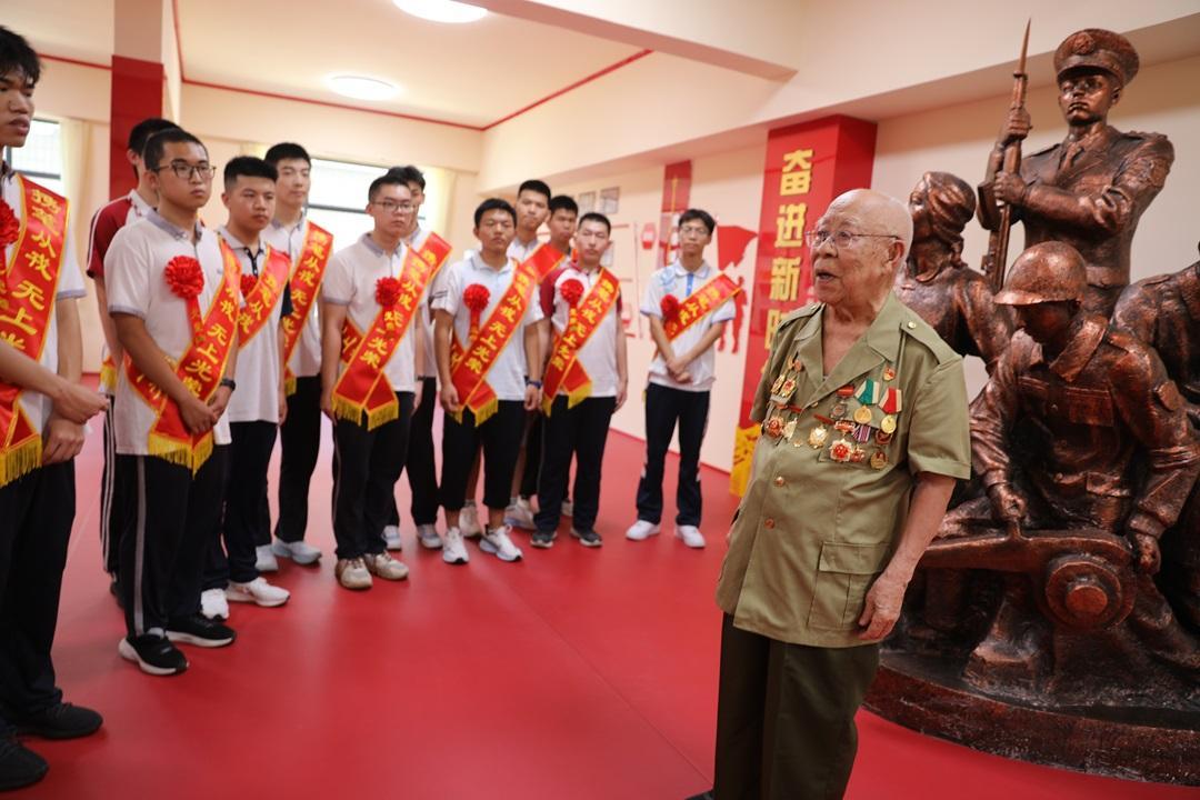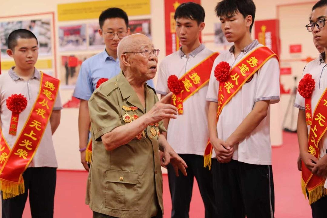 圖為劉世鉞(右一)在石家莊警備區(qū)榮譽(yù)室為2025年考取軍校的新生講紅色故事。侯玉春 攝