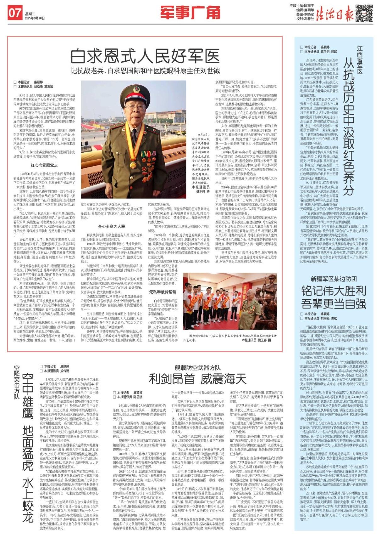 94歲的劉世鉞是河北省軍區(qū)石家莊第二離職干部休養(yǎng)所離休干部、白求恩國際和平醫(yī)院眼科原主任。他從醫(yī)45年,給患者帶來光明,離休后的31年里仍堅(jiān)持義診傳業(yè),用行動(dòng)詮釋對(duì)醫(yī)學(xué)事業(yè)的熱愛和對(duì)患者的責(zé)任。
