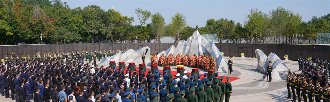 9月13日10時,安葬儀式開始。陵園下沉式紀念廣場環(huán)形烈士英名墻下,擺滿黃白相間的菊花,參加儀式的人們肅穆站立。軍樂隊奏響婉轉(zhuǎn)低回的《思念曲》,在解放軍儀仗司禮大隊官兵持槍護衛(wèi)下,禮兵們邁著整齊的步伐,護送志愿軍烈士遺骸棺槨緩步進入紀念廣場,全場奏唱中華人民共和國國歌。