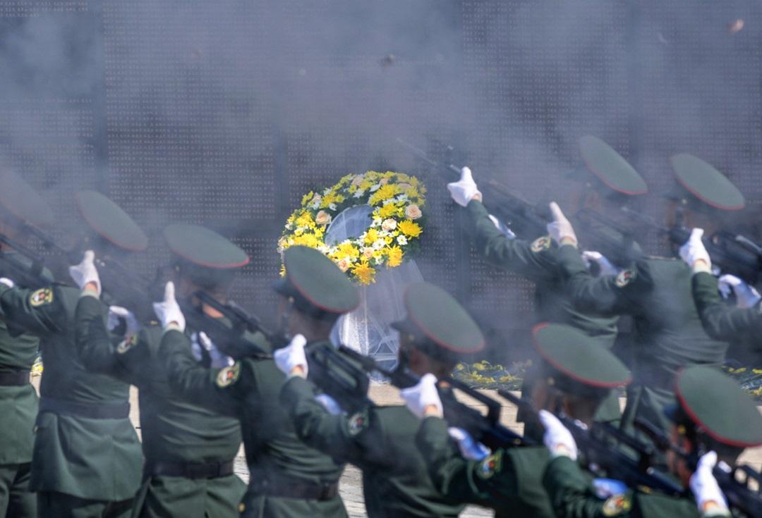 圖為9月13日,禮兵連續(xù)鳴槍12響,向志愿軍烈士致以崇高敬意。張永進 攝