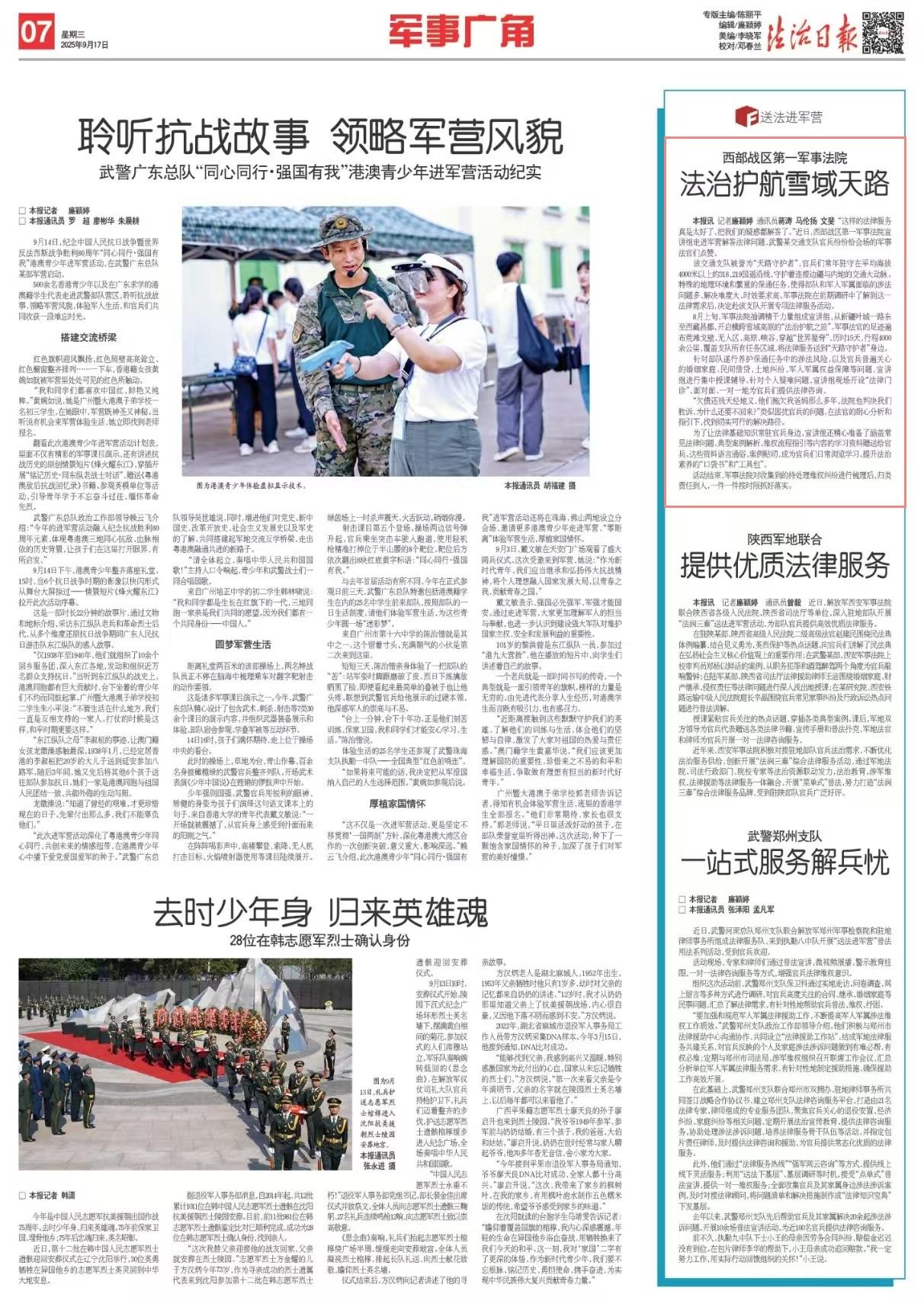 “這樣的法律服務(wù)真是太好了,把我們的疑惑都解答了。”近日,西部戰(zhàn)區(qū)第一軍事法院宣講組走進(jìn)軍營(yíng)解答法律問(wèn)題,武警某交通支隊(duì)官兵紛紛給會(huì)場(chǎng)的軍事法官們點(diǎn)贊。