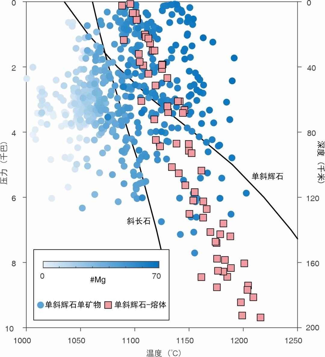 圖為單斜輝石單礦物、單斜輝石-熔體溫壓計溫度壓力計算及巖石學模型模擬。