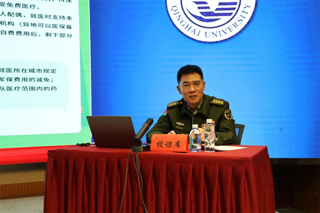 解放軍西寧軍事檢察院軍事檢察官魯振林以“筑夢強軍,優(yōu)待隨行”為題,為學(xué)子們講述了參軍入伍為當(dāng)代大學(xué)生帶來的紅利與機遇,將憲法規(guī)定的公民國防義務(wù)生動具象化。他從成長平臺、政策優(yōu)待、職業(yè)發(fā)展等多維度,深刻闡釋了軍營作為“淬煉大熔爐”和“人生加油站”的獨特價值。