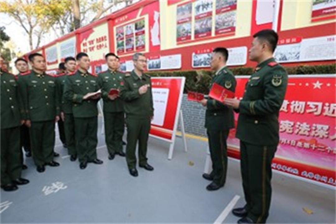 為提高普法教育的針對性、時效性,“憲法宣傳周”期間,鄭州軍事法院線下采取“法治微課堂”“法治文化長廊”“法治書香惠官兵”等形式,先后在河南省軍區(qū)、武警河南總隊鄭州支隊、陸軍兵種大學等駐豫部隊開展普法活動;線上依托強軍網(wǎng)開設(shè)憲法宣傳專欄,推送精心制作的憲法主題展板,以圖文方式生動宣傳憲法精神,讓法治教育“活”起來。