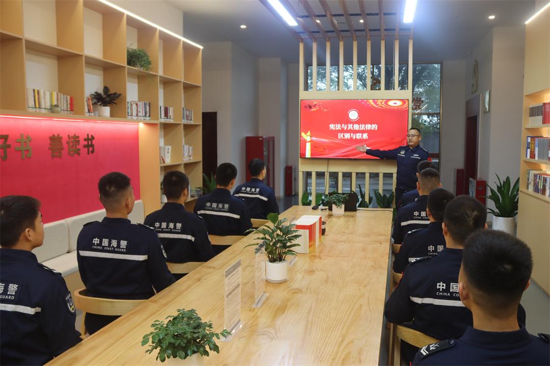 “憲法的生命在于實施,憲法的權(quán)威也在于實施。作為新時代的一名海警執(zhí)法員,要主動學習憲法知識,自覺遵守憲法規(guī)定,善于運用憲法維權(quán)。”執(zhí)法員姚青呈說。