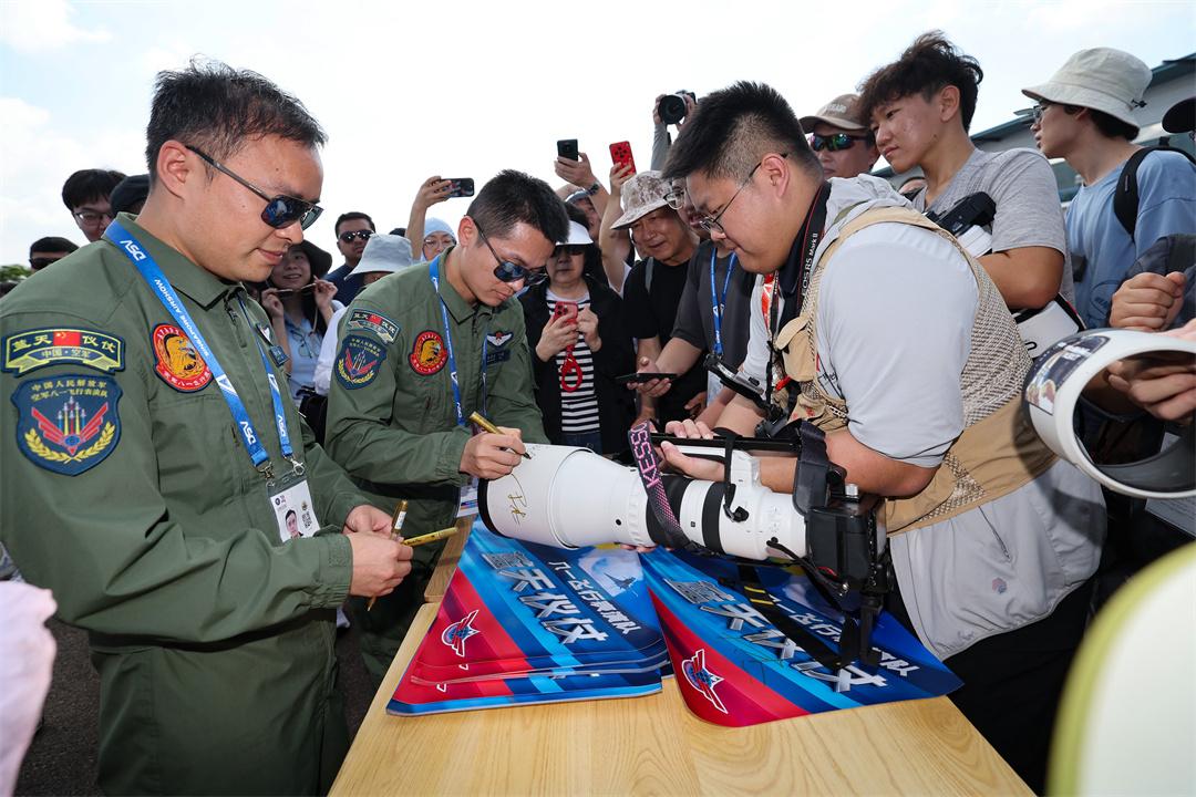 圖為中國(guó)空軍八一飛行表演隊(duì)飛行員與觀眾合影。