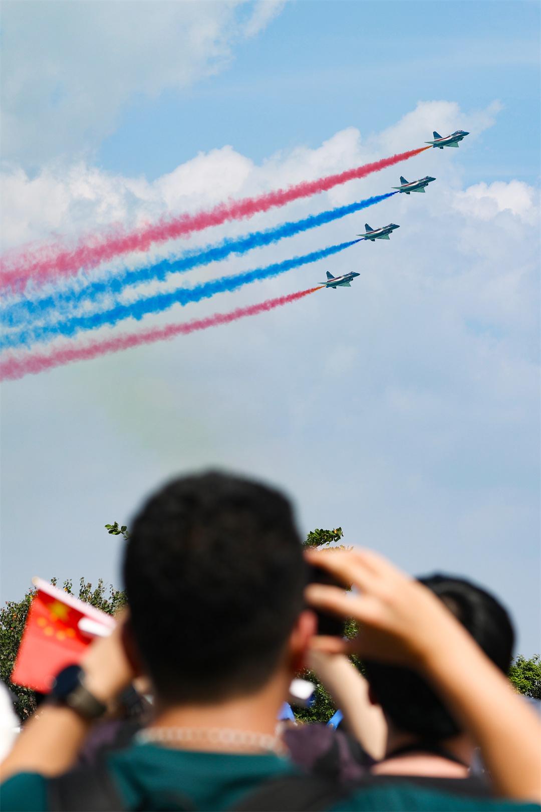 “作為一名退役老兵,我感到很自豪?!薄翱吹街袊?guó)戰(zhàn)鷹翱翔藍(lán)天,我的心也在隨之飛舞。”……現(xiàn)場(chǎng)華人看到中國(guó)戰(zhàn)鷹遞進(jìn)時(shí),紛紛揮舞五星紅旗。
