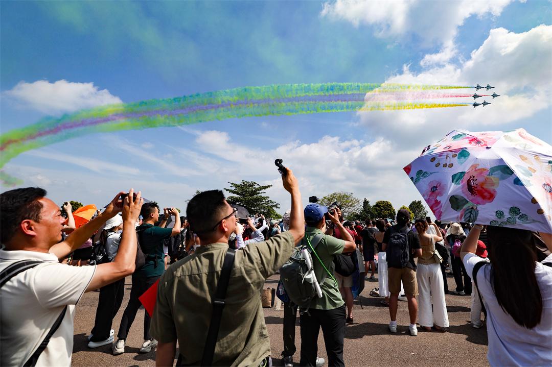 隨后,六機(jī)、五機(jī)、四機(jī)、單機(jī)等一系列高難度動(dòng)作連貫呈現(xiàn),每一次翻轉(zhuǎn)、每一處銜接、每一個(gè)姿態(tài)都精準(zhǔn)利落、一氣呵成,充分展現(xiàn)飛行員精湛的飛行技術(shù)和戰(zhàn)機(jī)優(yōu)異性能,引得現(xiàn)場(chǎng)觀眾陣陣歡呼。