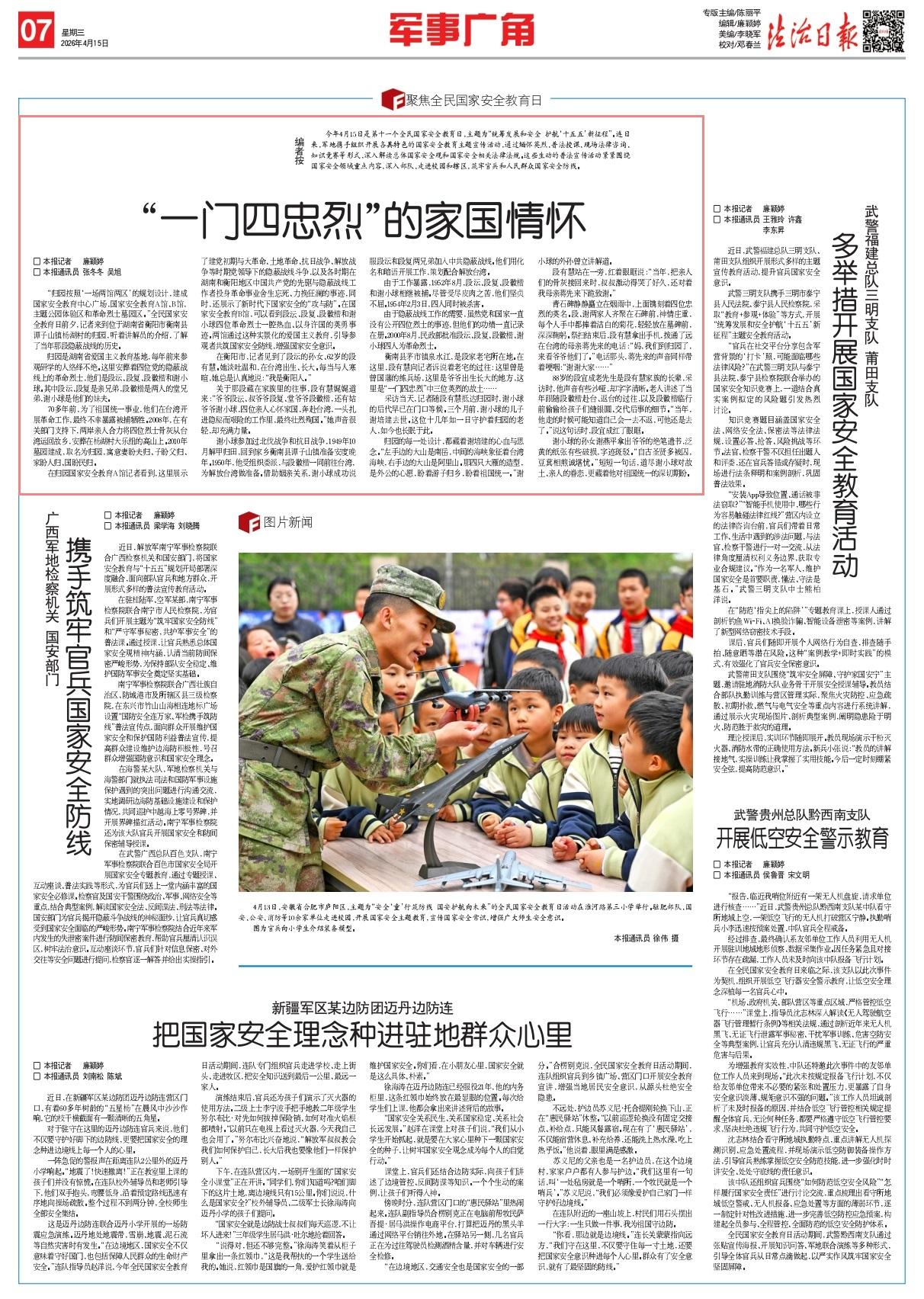 今年4月15日是第十一個全民國家安全教育日,主題為“統(tǒng)籌發(fā)展和安全 護航‘十五五’新征程”。連日來,軍地攜手組織開展各具特色的國家安全教育主題宣傳活動,通過緬懷英烈、普法授課、現(xiàn)場法律咨詢、知識競賽等形式,深入解讀總體國家安全觀和國家安全相關(guān)法律法規(guī)。這些生動的普法宣傳活動緊緊圍繞國家安全領(lǐng)域重點內(nèi)容,深入部隊、走進校園和轄區(qū),筑牢官兵和人民群眾國家安全防線。