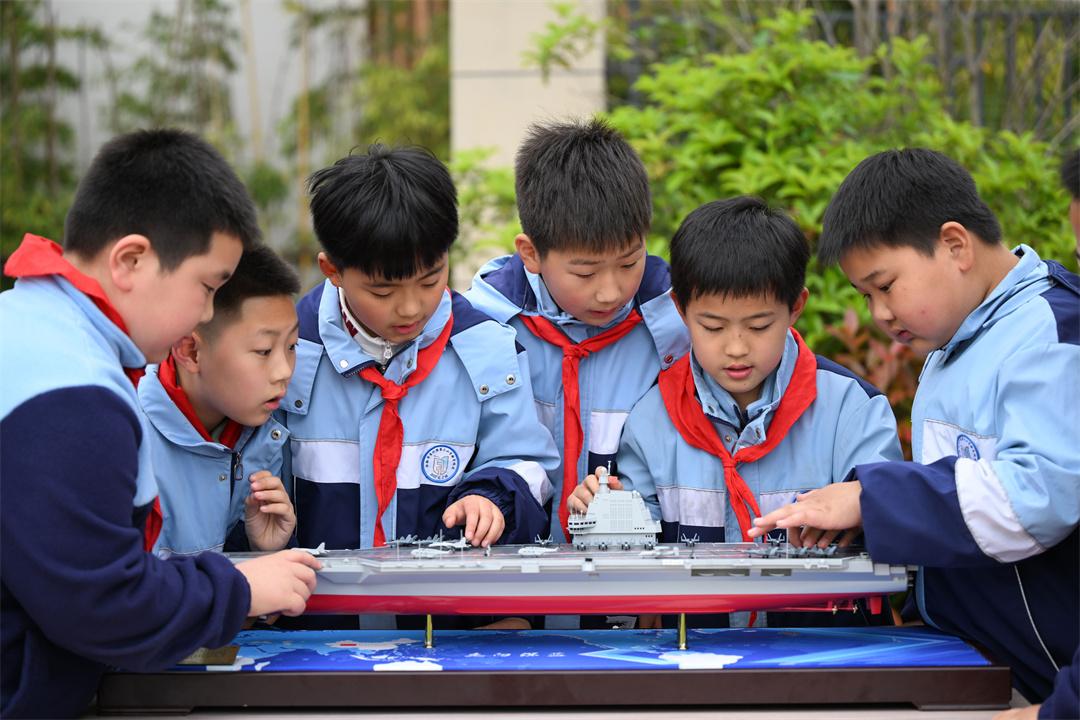 圖為小學(xué)生觀摩裝備模型。